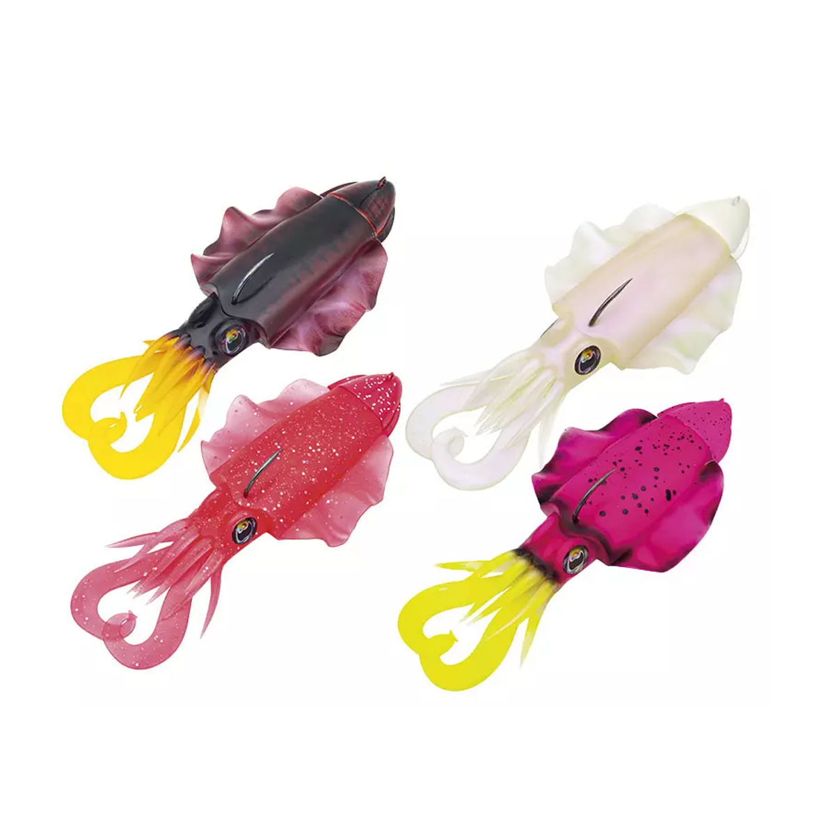 Leurre vinyle imitation seiche 215 mm avec nage réaliste, effets lumineux et forte attractivité pour le jigging en mer.